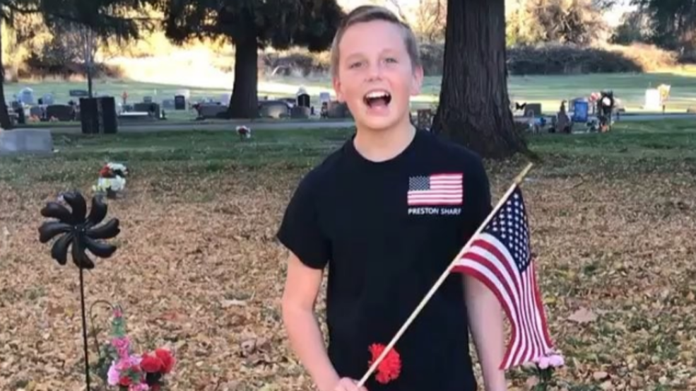 Preston Sharp, a 12-year-old boy from Redding, Calif., is honoring veterans around the country with his 'A Flag and A Flower Challenge.'